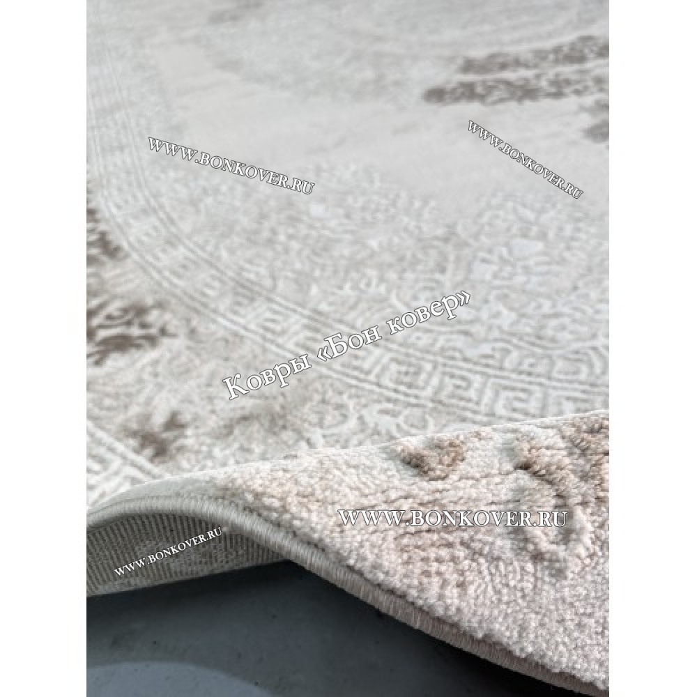 Изящный Классический ковер дизайн 104 Белый с бежевым Овал наполняет интерьер квартиры теплом и уютом, гармонично сочетает в себе изящество и стиль. Он соткан из высококачественного сырья, комфортный и долговечный.