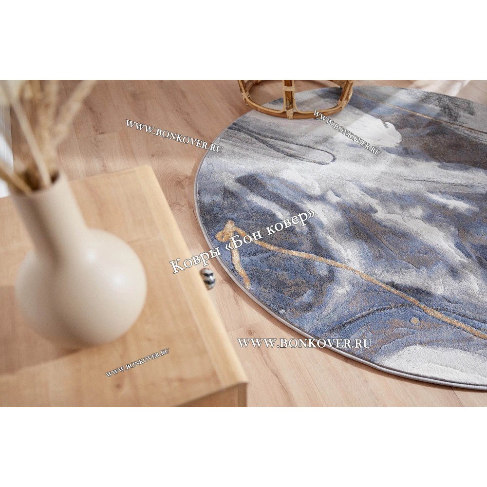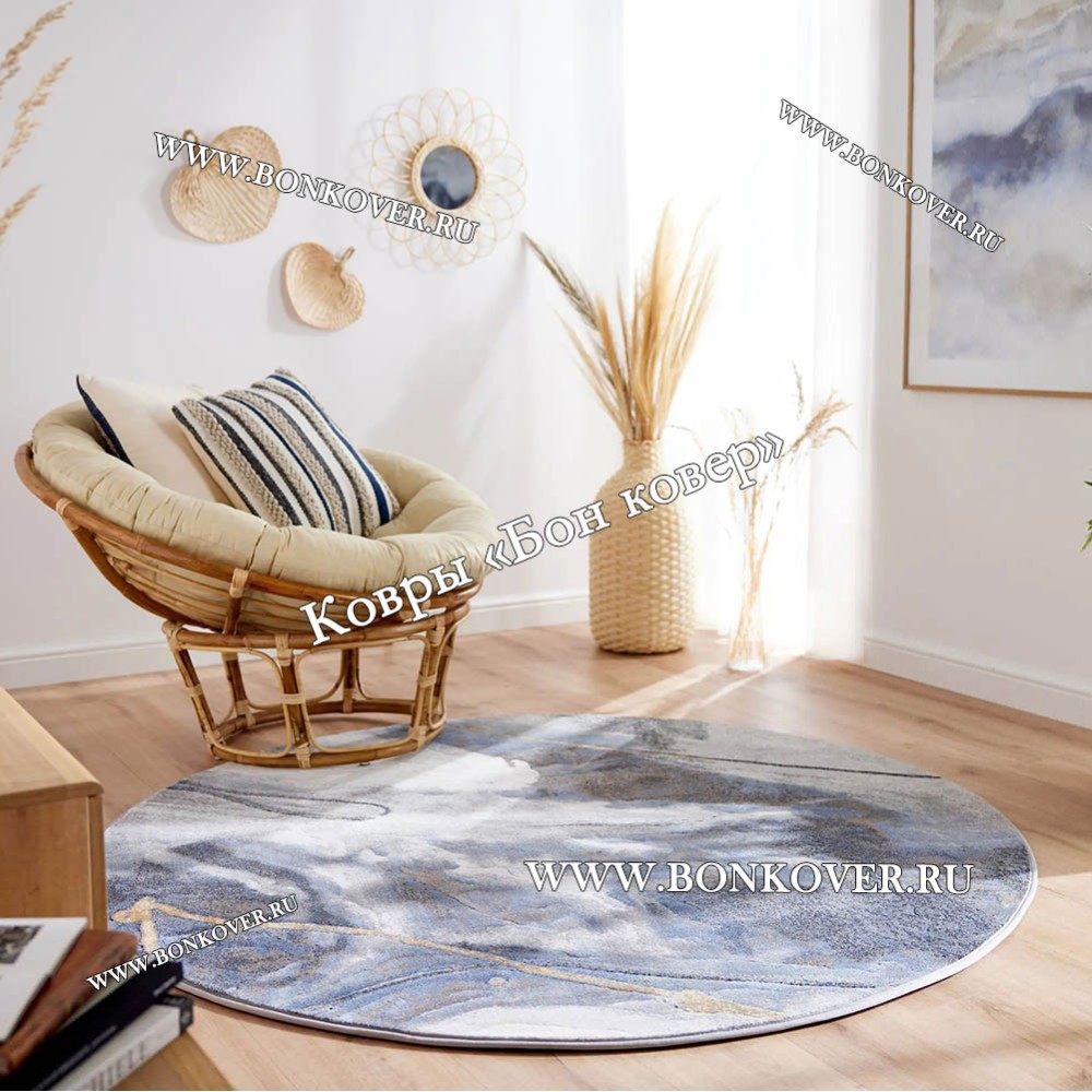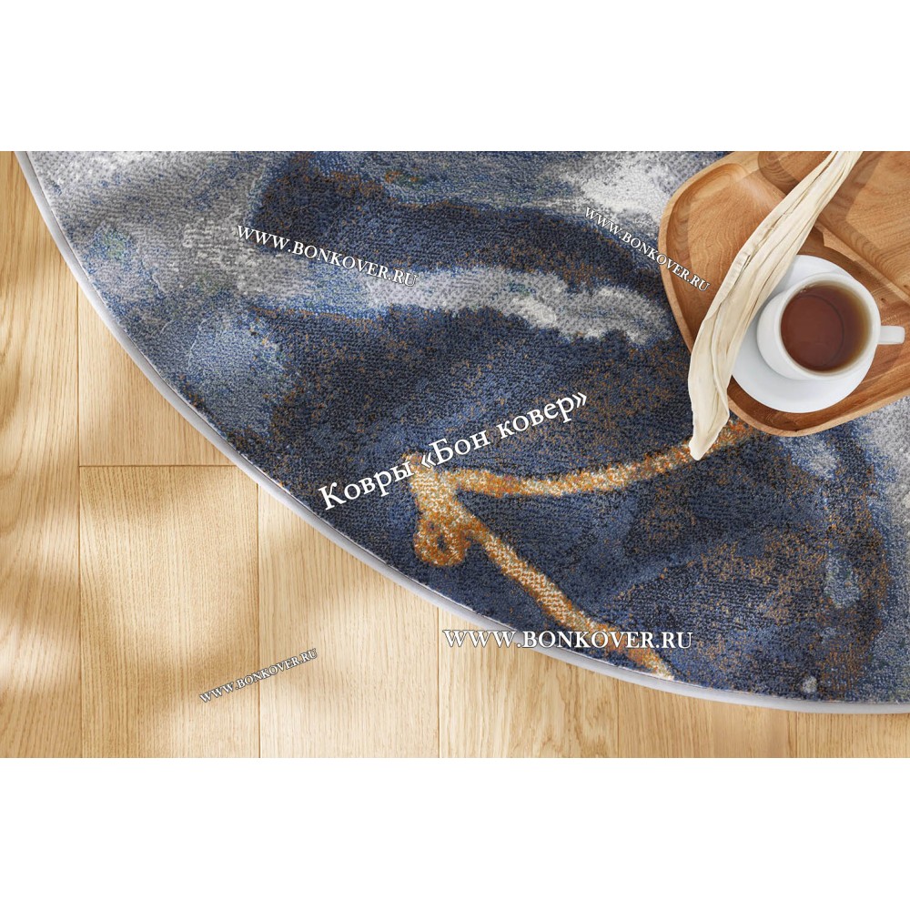 Ковер для гостиной Арт 28937 Круг Синий станет шикарным преображением жилого помещения, подчеркивая высокий статус семьи владельца.