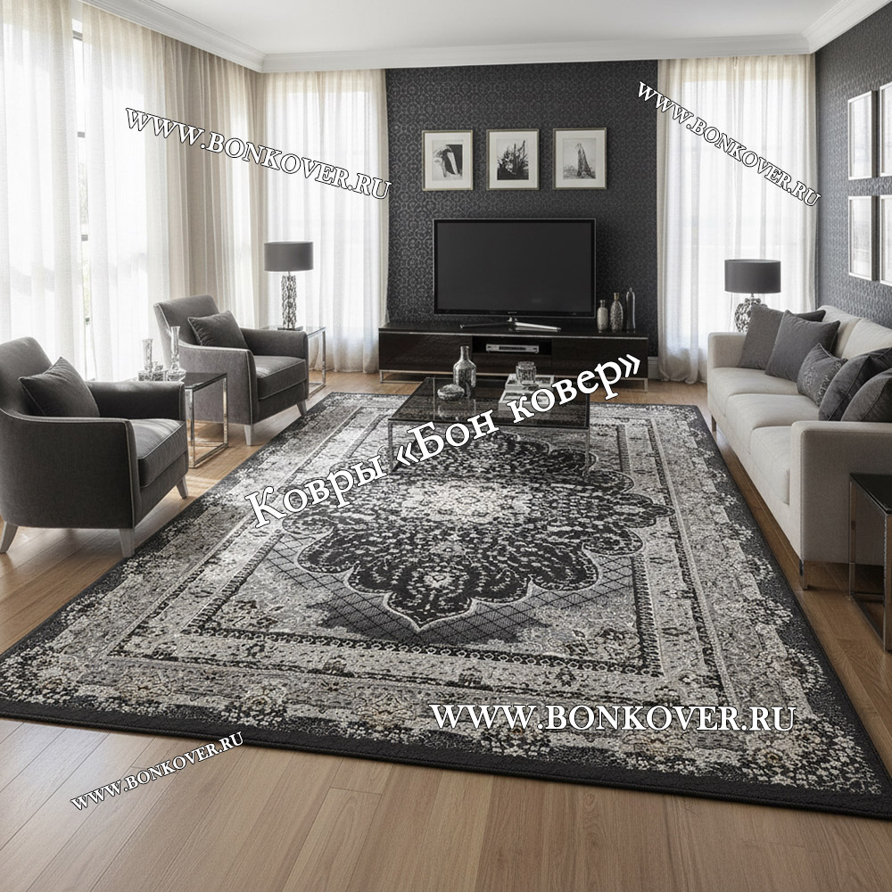 Ковер Для гостиной дизайн 68 Турция Серый станет внезапным преображением жилого помещения, подчеркивая высокий статус семьи владельца.