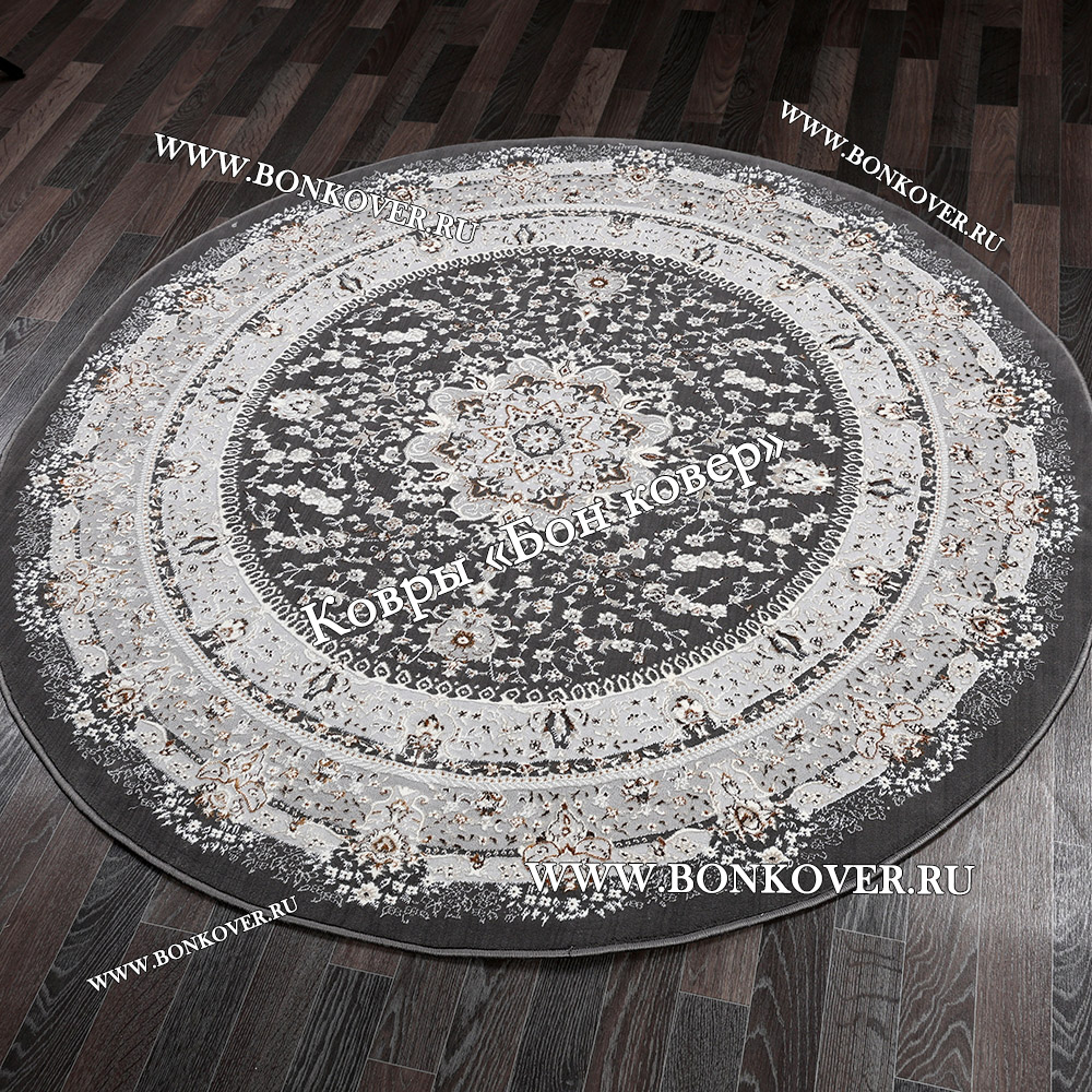 Красивый Ковер Для гостиной дизайн 68 Турция Серый Круг наполняет интерьер жилого пространства теплом и уютом, гармонично сочетает в себе изящество и стиль. Он соткан из экологически чистого сырья, комфортный и долговечный.