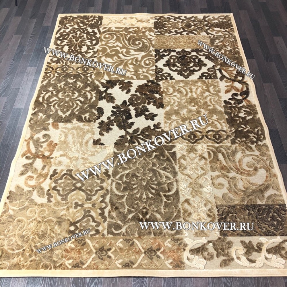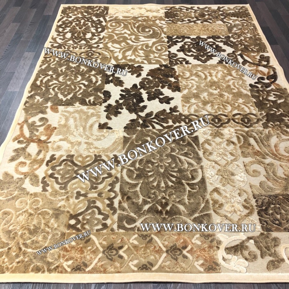 Красивый Ковер для Гостиной из Артшелка Дизайн 22 Бежево-Коричневый наполняет интерьер помещения теплом и уютом, гармонично сочетает в себе изящество и красоту. Он создан из высококачественного сырья, комфортный и долговечный.