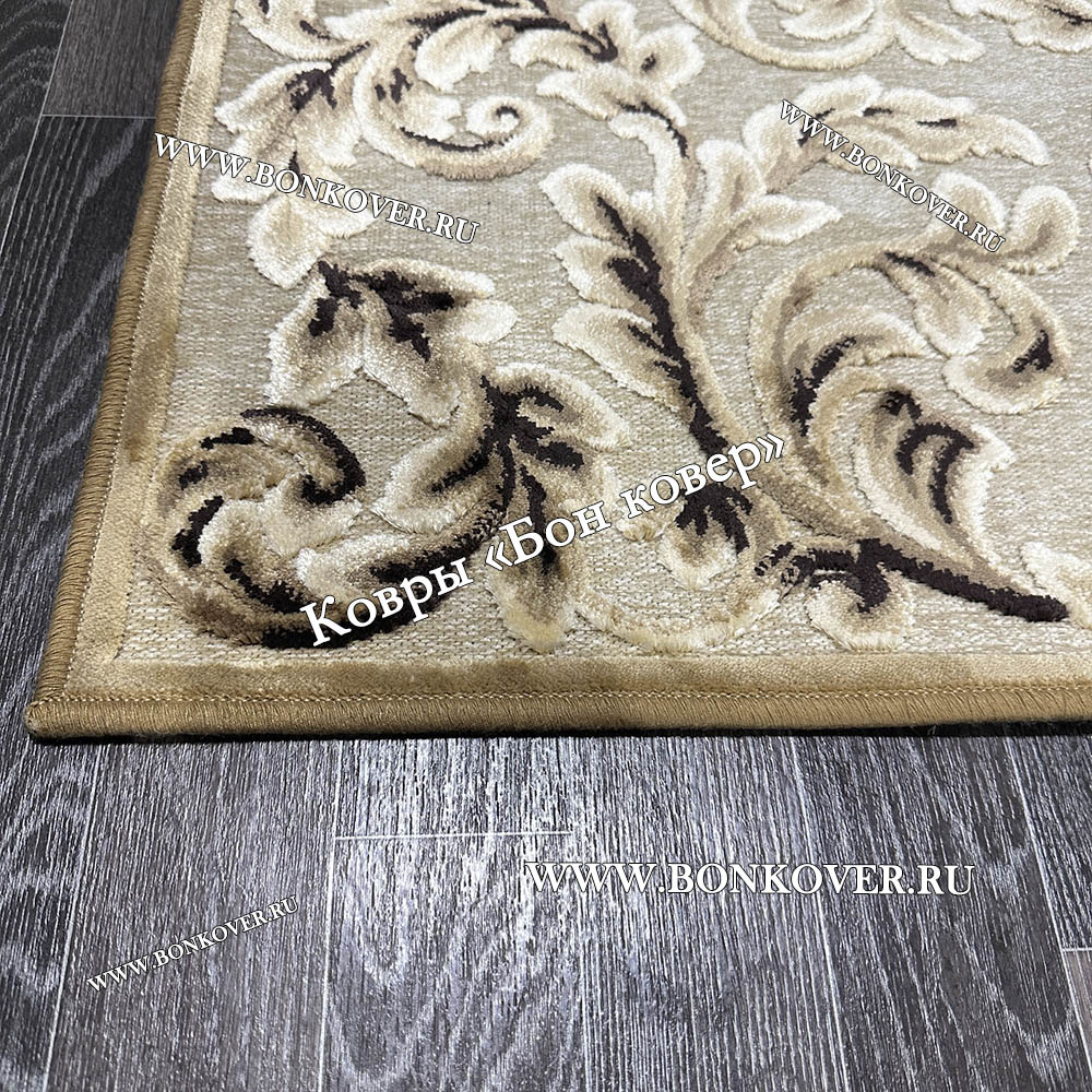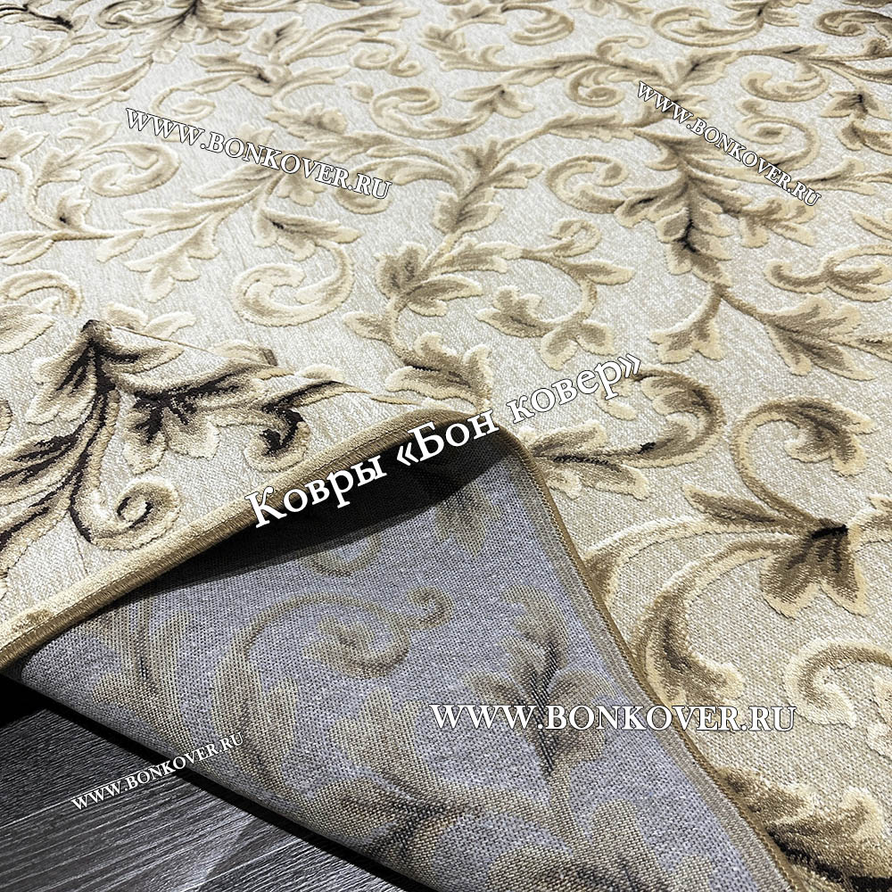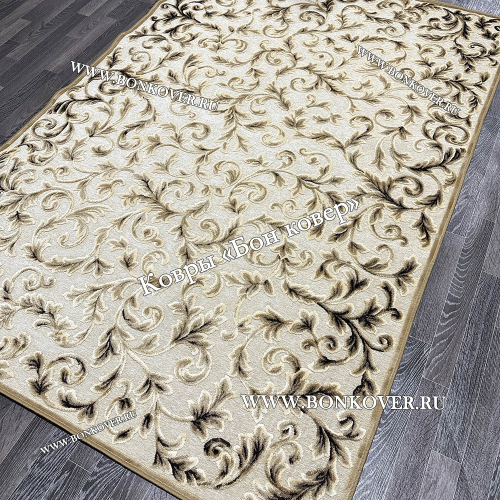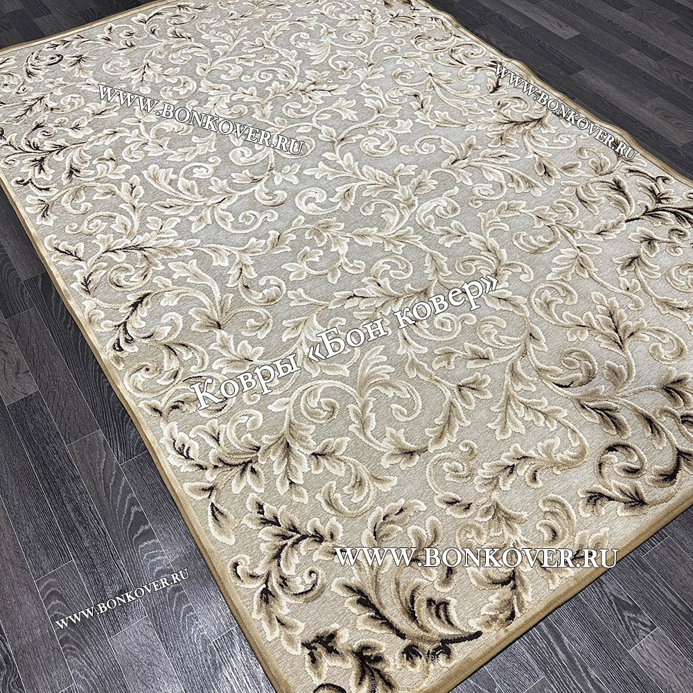 Ковер для гостиной из артшелка дизайн 61 Бежевый станет идеальным дополнением интерьера, оформленного в современном или классическом стиле. Мягкое, но прочное, ковровое изделие обеспечивает тепло- и шумоизоляцию, отличается длительным периодом эксплуатации, надежностью, экологичностью и высокой износостойкостью, является отличным барьером от повышенной влажности в комнате и утеплителем для холодного пола. Благодаря качеству материалов, ковер не деформируется, сохраняет первоначальный вид под тяжестью предметов мебели. За его поверхностью легко ухаживать.