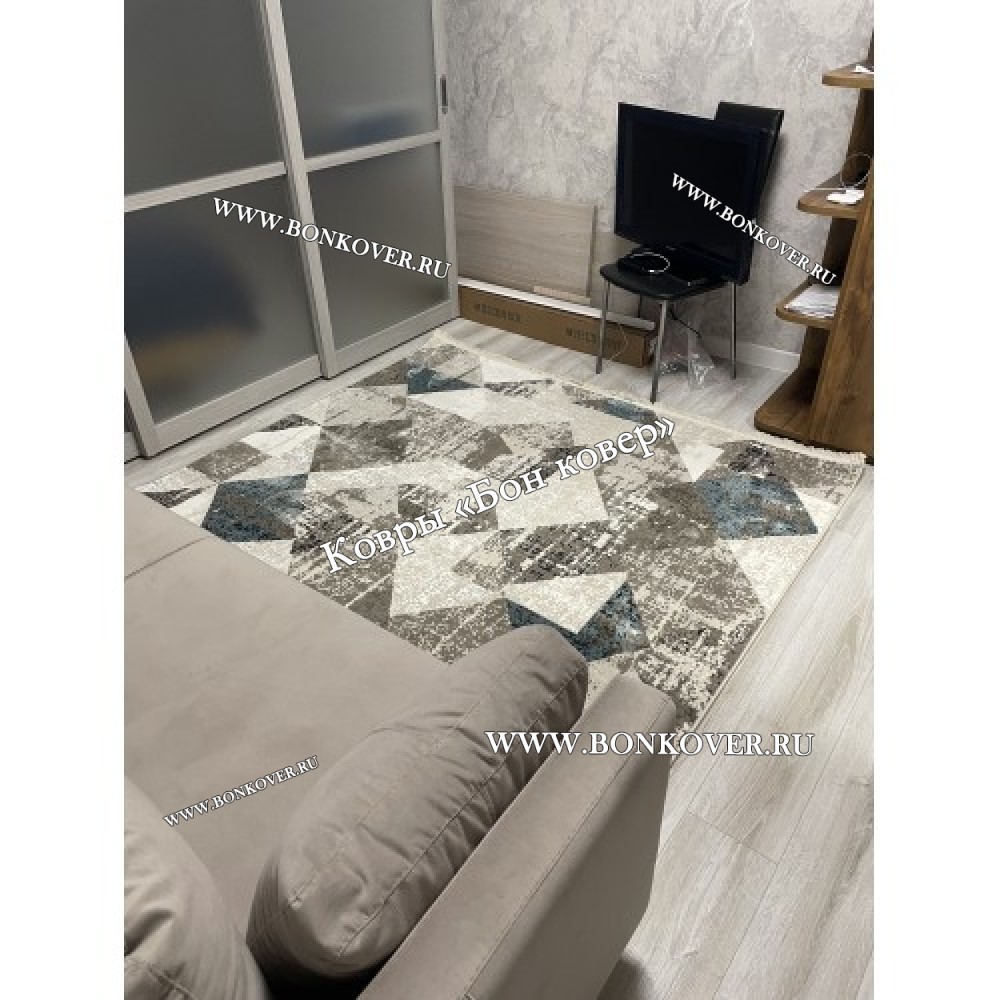 Ковер Коротковорсный Лайт Дизайн 34 Абстракция Серый с Синим