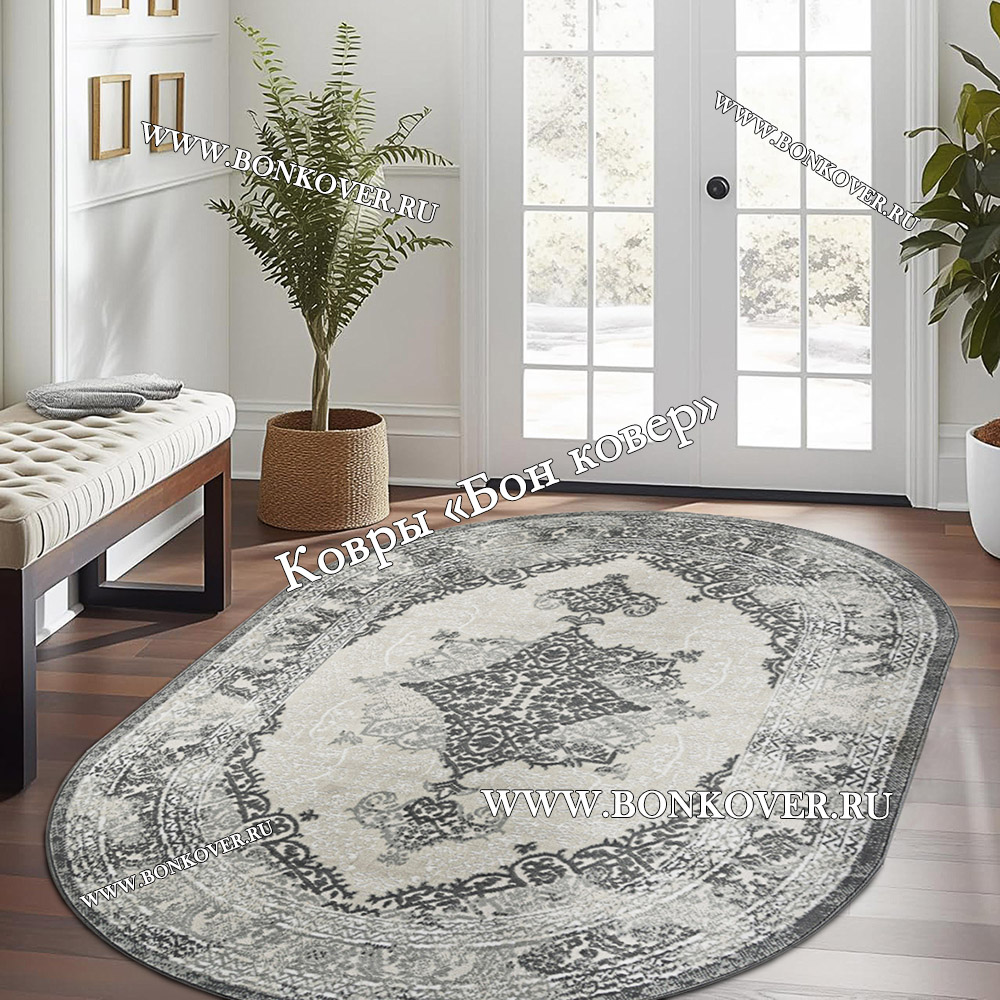 Ковер Лайт Карпет New 4 Дизайн 08 Серый Овал станет стильным преображением вашей комнаты, подчеркивая высокий статус владельца.