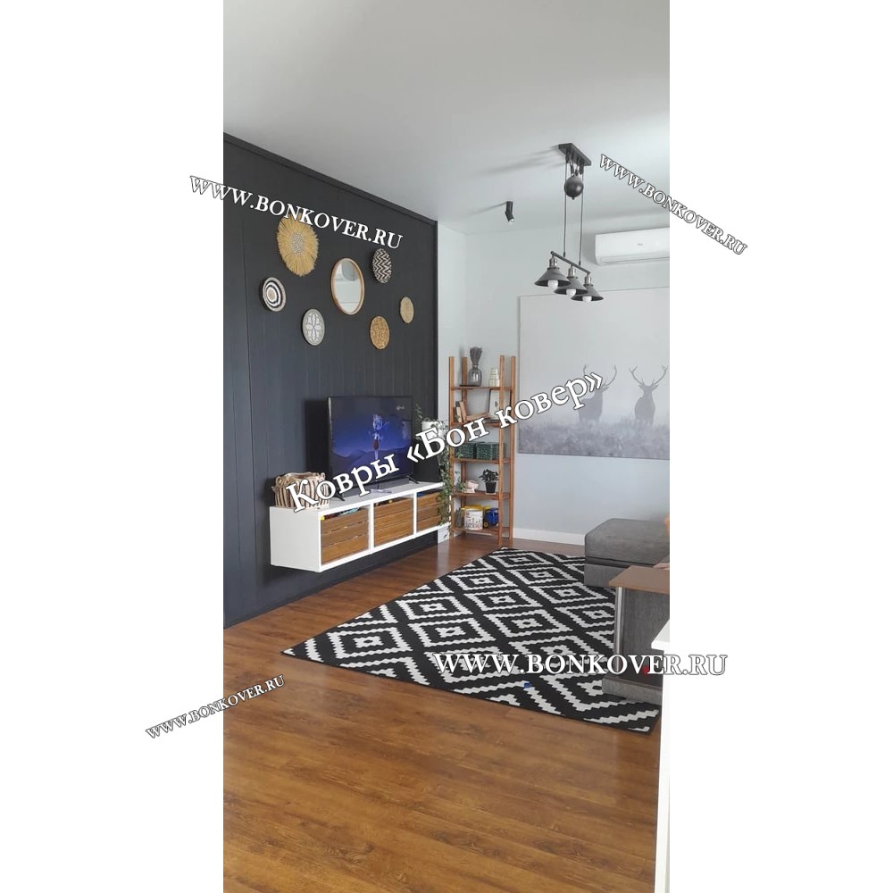 Ковер скандинавский черно-белый станет внезапным преображением вашей комнаты, подчеркивая высокий статус семьи владельца.