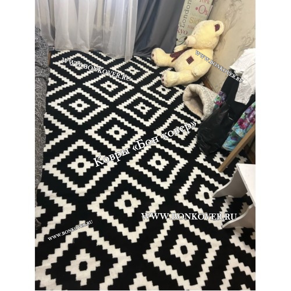 Шикарный Ковер скандинавский черно-белый наполняет интерьер помещения теплом и уютом, гармонично сочетает в себе изящество и стиль. Он соткан из высококачественного сырья, комфортный и долговечный.