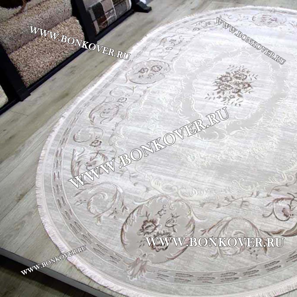 Красивый Ковер Турция Для Гостиной Дизайн 61 Серый с Бежевым Овал наполняет интерьер квартиры теплом и уютом, гармонично сочетает в себе изящество и красоту. Он выполнен из современных материалов, прочный и долговечный.
