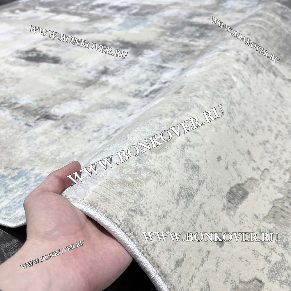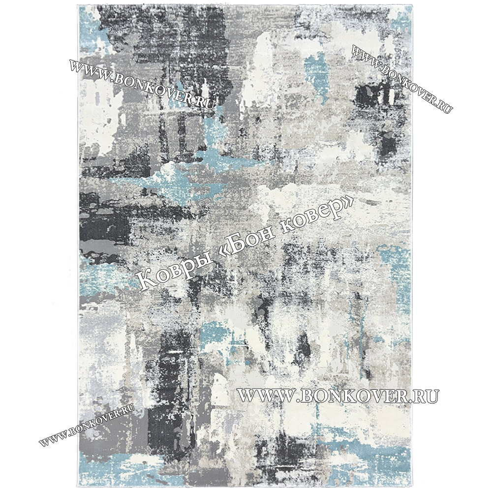 Изящный Ковер Турция Современный Дизайн 26 Серый с Голубым наполняет интерьер гостиной теплом и уютом, гармонично сочетает в себе изящество и красоту. Он соткан из экологически чистого сырья, комфортный и долговечный.