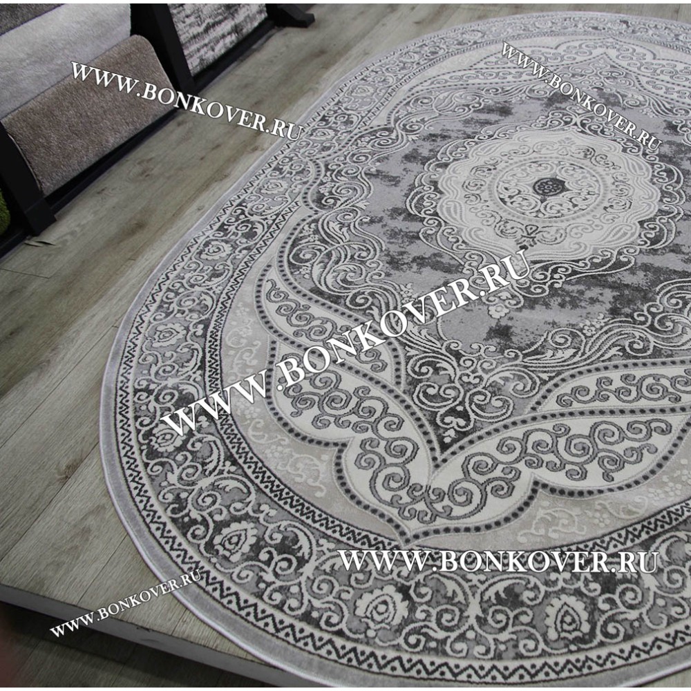 Красивый Ковер в гостиную дизайн 01 Серый Овал наполняет интерьер квартиры теплом и уютом, гармонично сочетает в себе изящество и стиль. Он создан из экологически чистого сырья, прочный и долговечный.