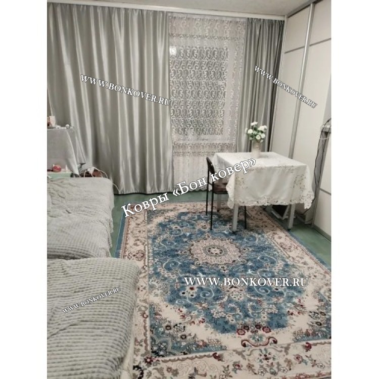 Красивый Ковер в гостиную дизайн 03 Синий наполняет интерьер комнаты теплом и уютом, гармонично сочетает в себе изящество и красоту. Он выполнен из износостойких материалов, комфортный и долговечный.