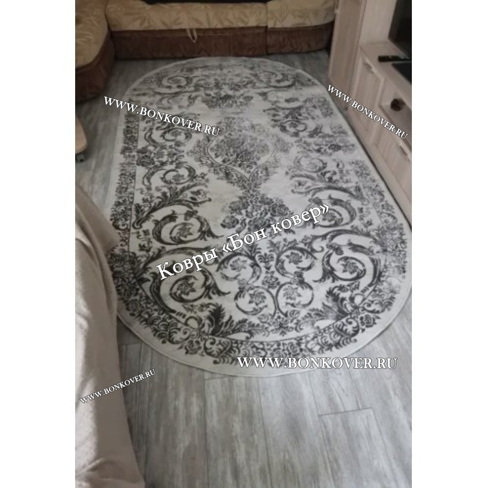 Изящный Ковер в гостиную дизайн 12 Серый Овал наполняет интерьер квартиры теплом и уютом, гармонично сочетает в себе изящество и красоту. Он создан из износостойких материалов, комфортный и долговечный.