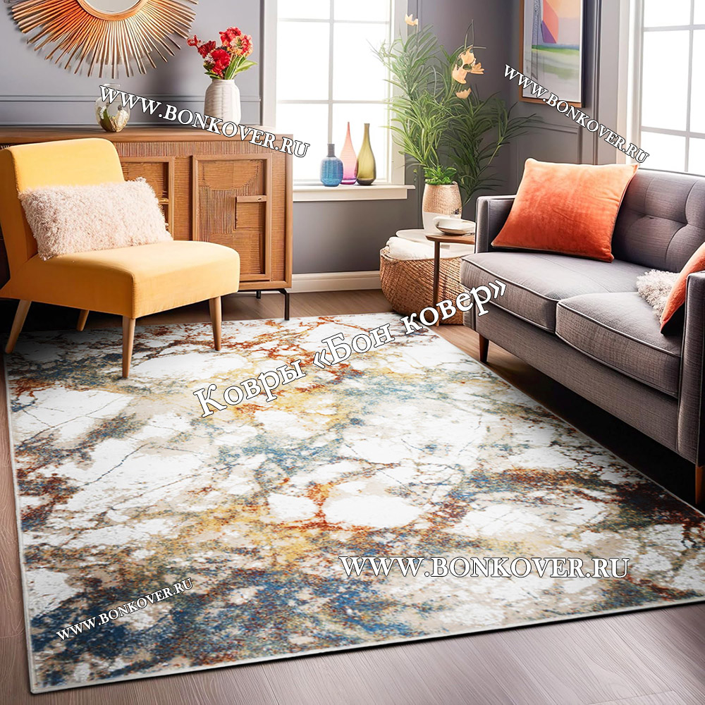 Шикарный Разноцветный Комнатный Ковер Дизайн 29940 наполняет интерьер вашего дома теплом и уютом, гармонично сочетает в себе изящество и стиль. Он создан из высококачественного сырья, комфортный и долговечный.