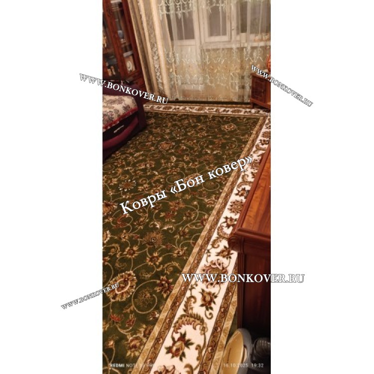 Элегантный РОССИЙСКИЙ ЖАККАРДОВЫЙ КОВЕР ЗЕЛЕНЫЙ наполняет интерьер помещения теплом и уютом, гармонично сочетает в себе изящество и стиль. Он соткан из износостойких материалов, комфортный и долговечный.