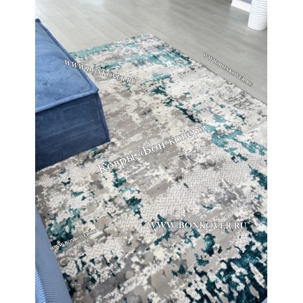 Современный ковер для комнаты 03 Бирюзовый станет великолепным преображением жилого помещения, подчеркивая высокий статус семьи владельца.