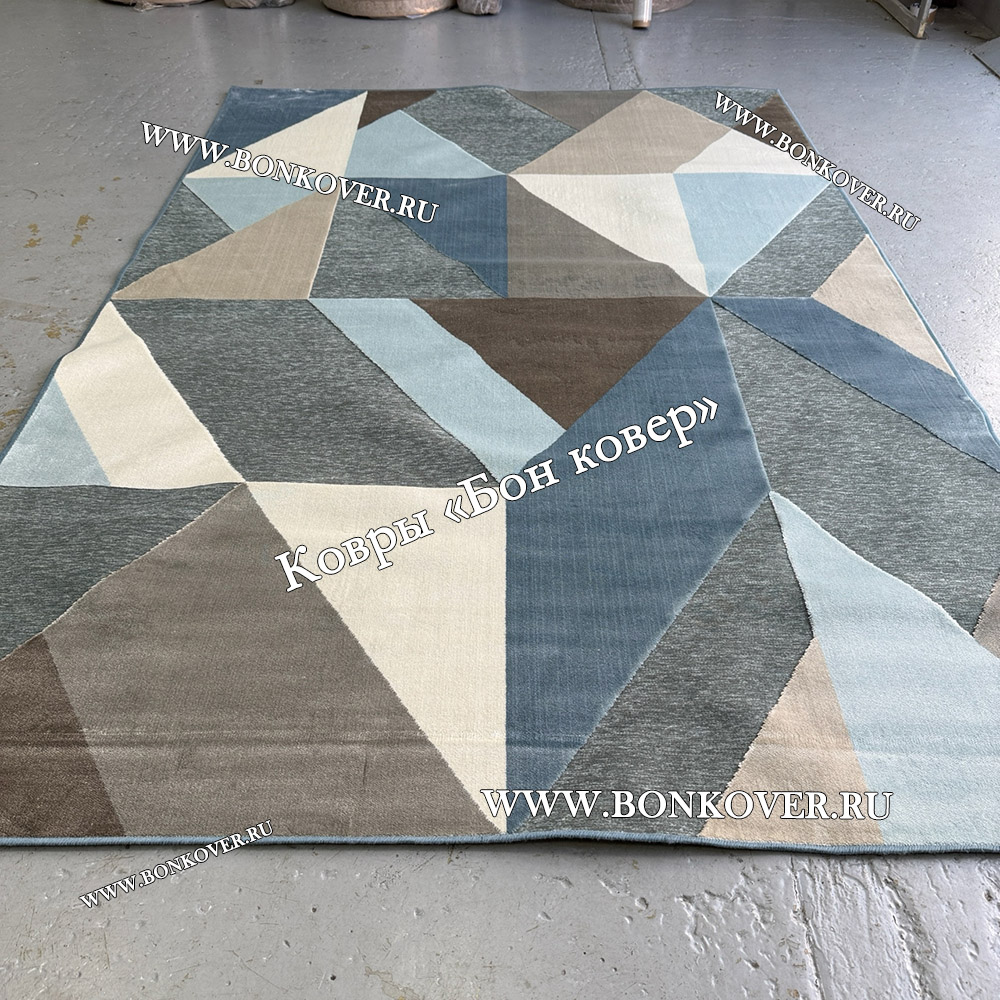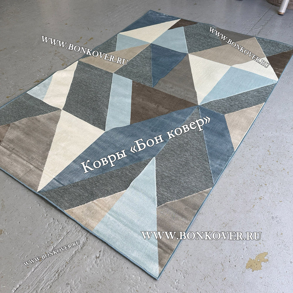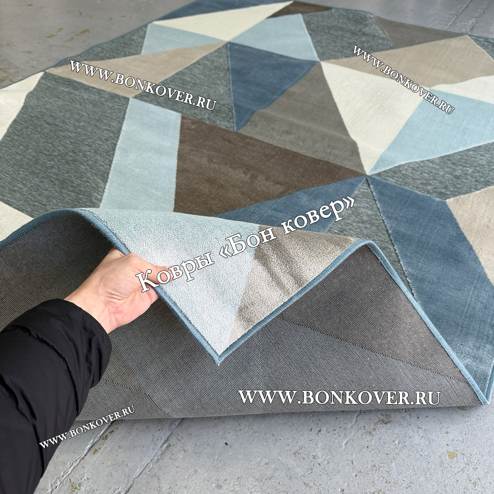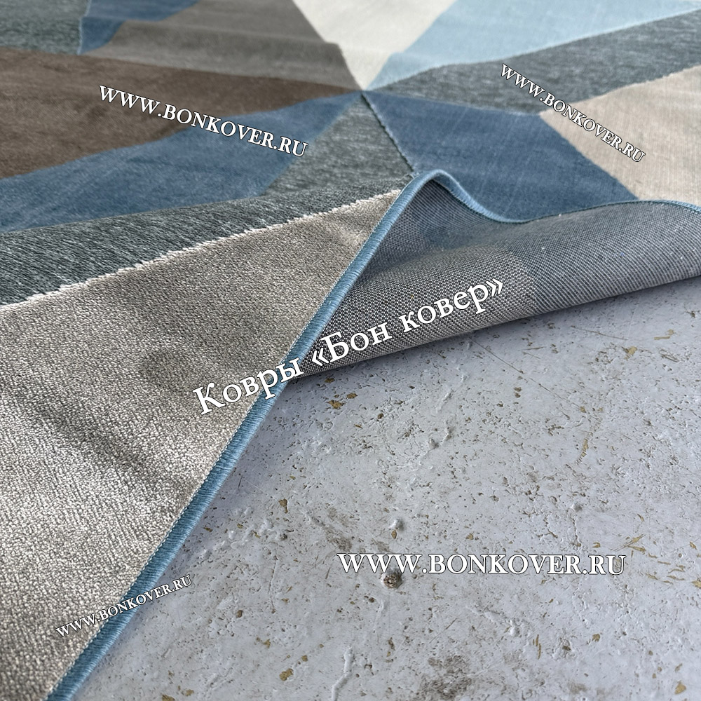 Турецкий Ковер Для Гостиной Дизайн 33 Синий с Серым Круг