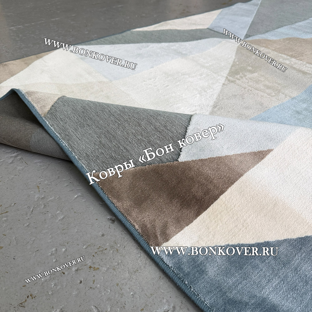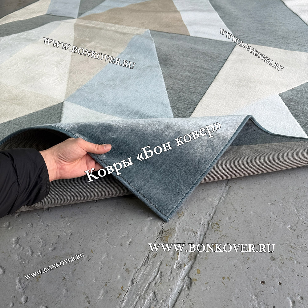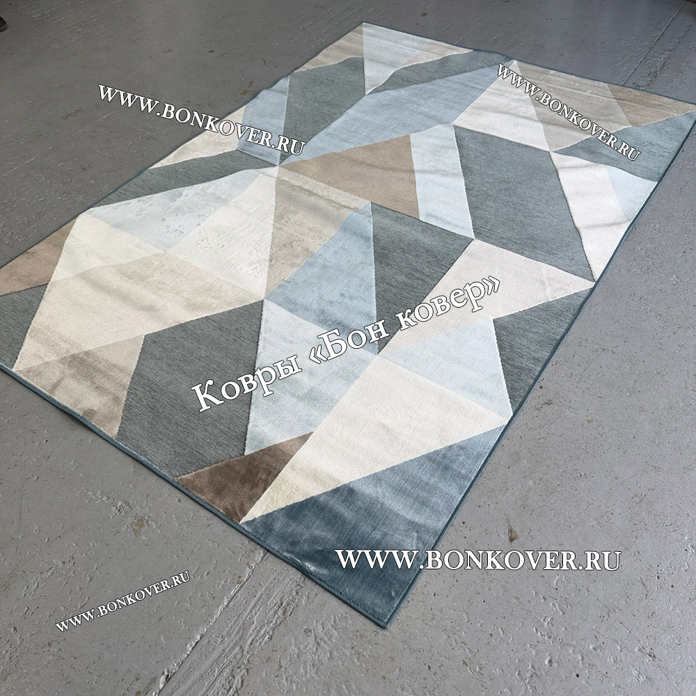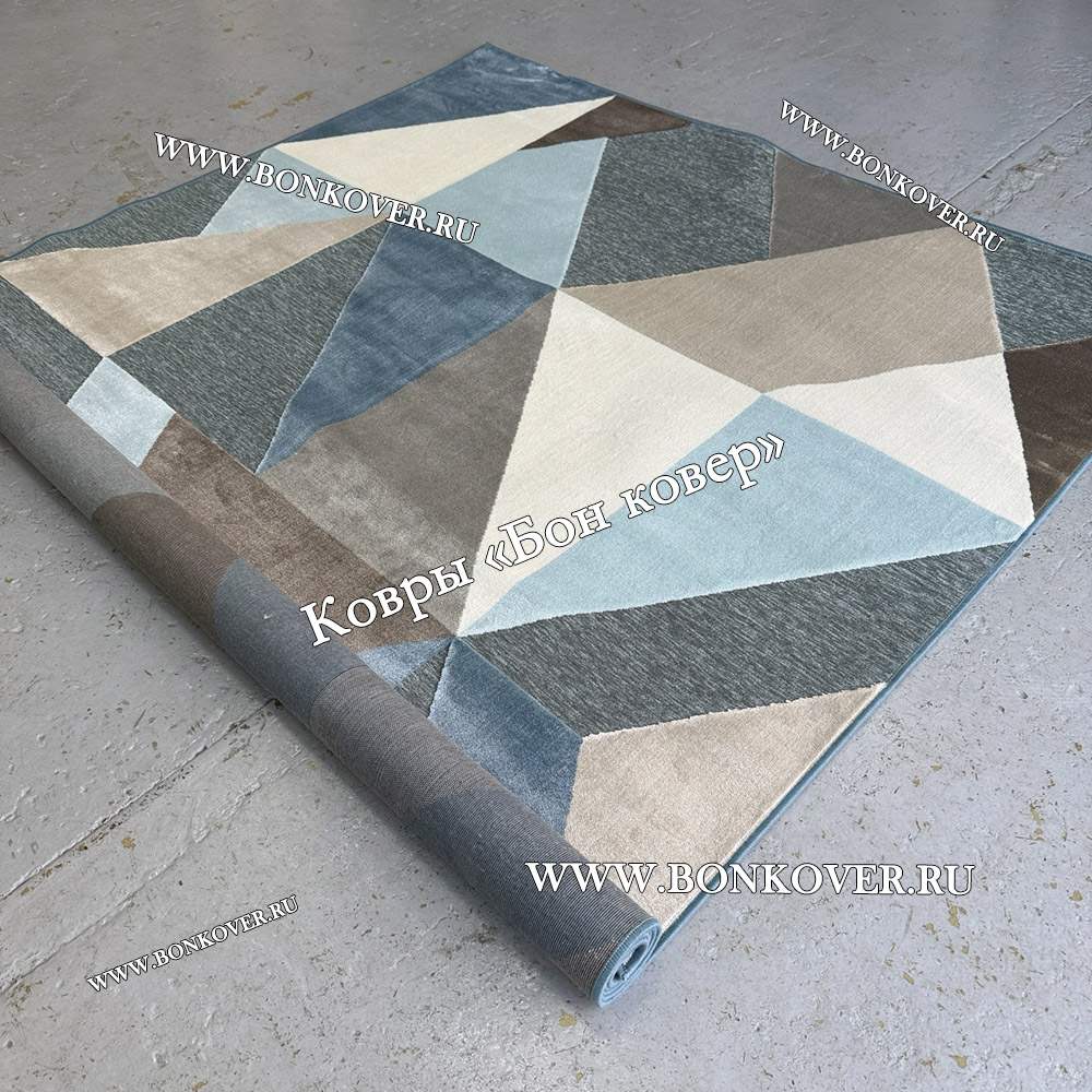 Турецкий Ковер Для Гостиной Дизайн 33 Синий с Серым Круг