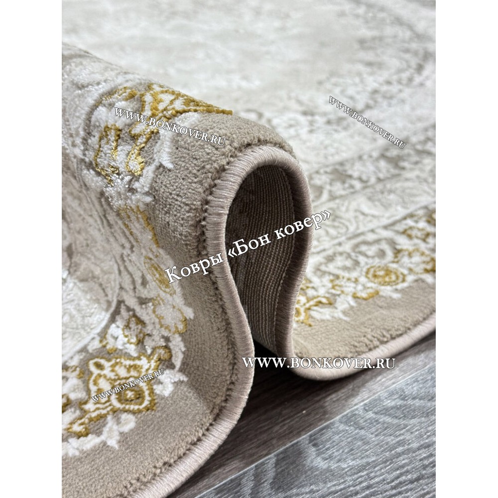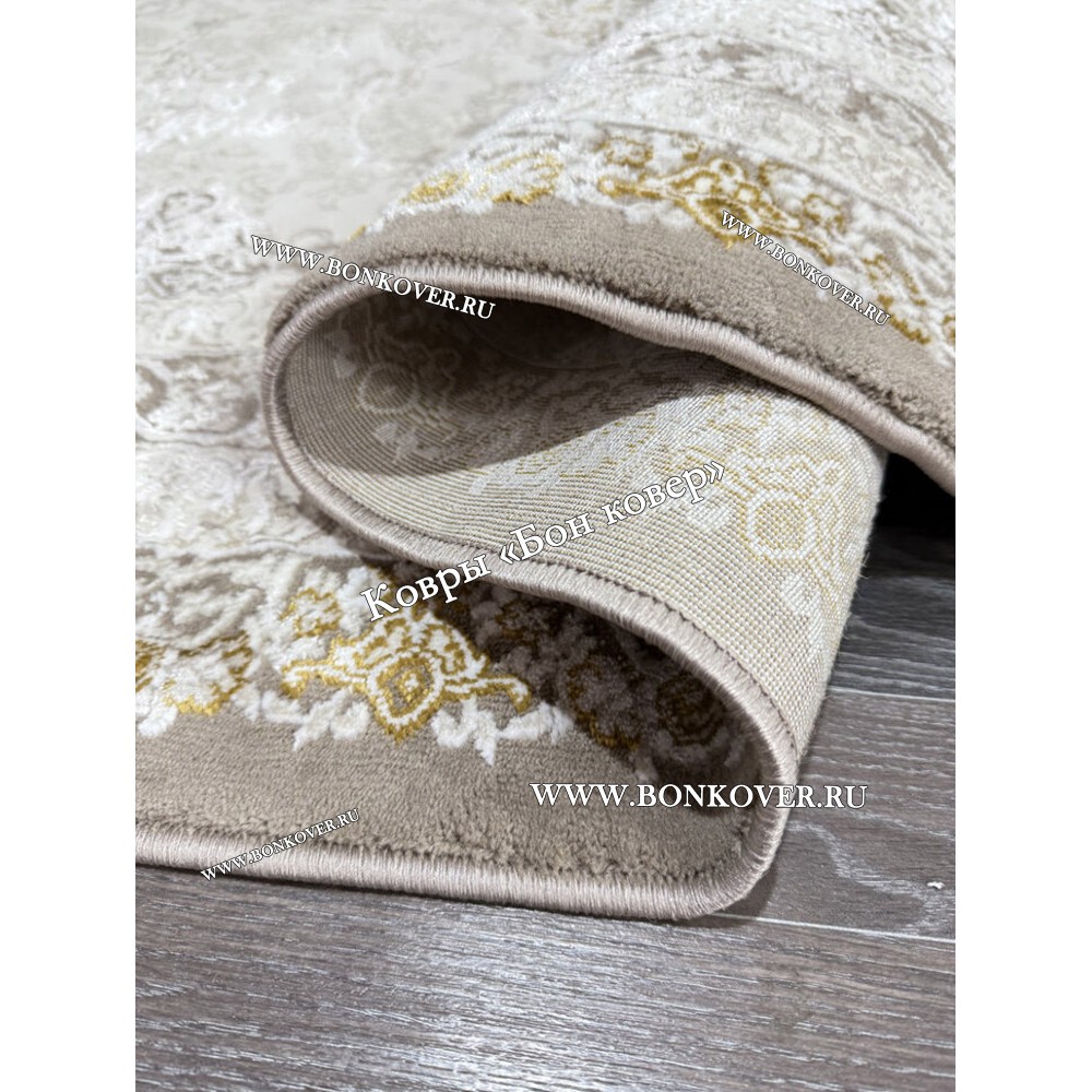 Турецкий Прямоугольный Ковер Бежевый с Золотистым дизайн 01