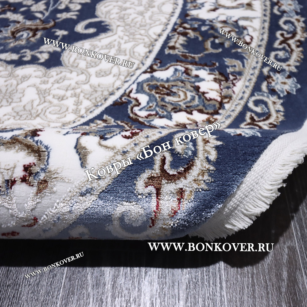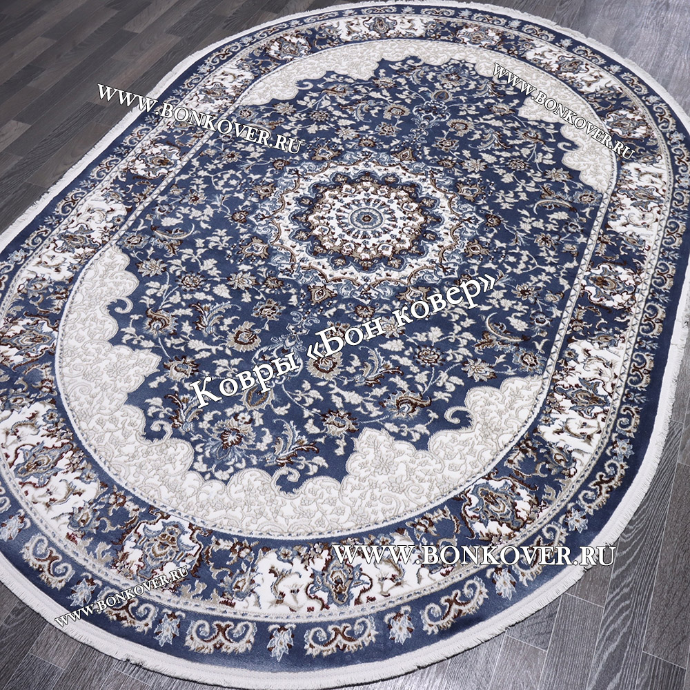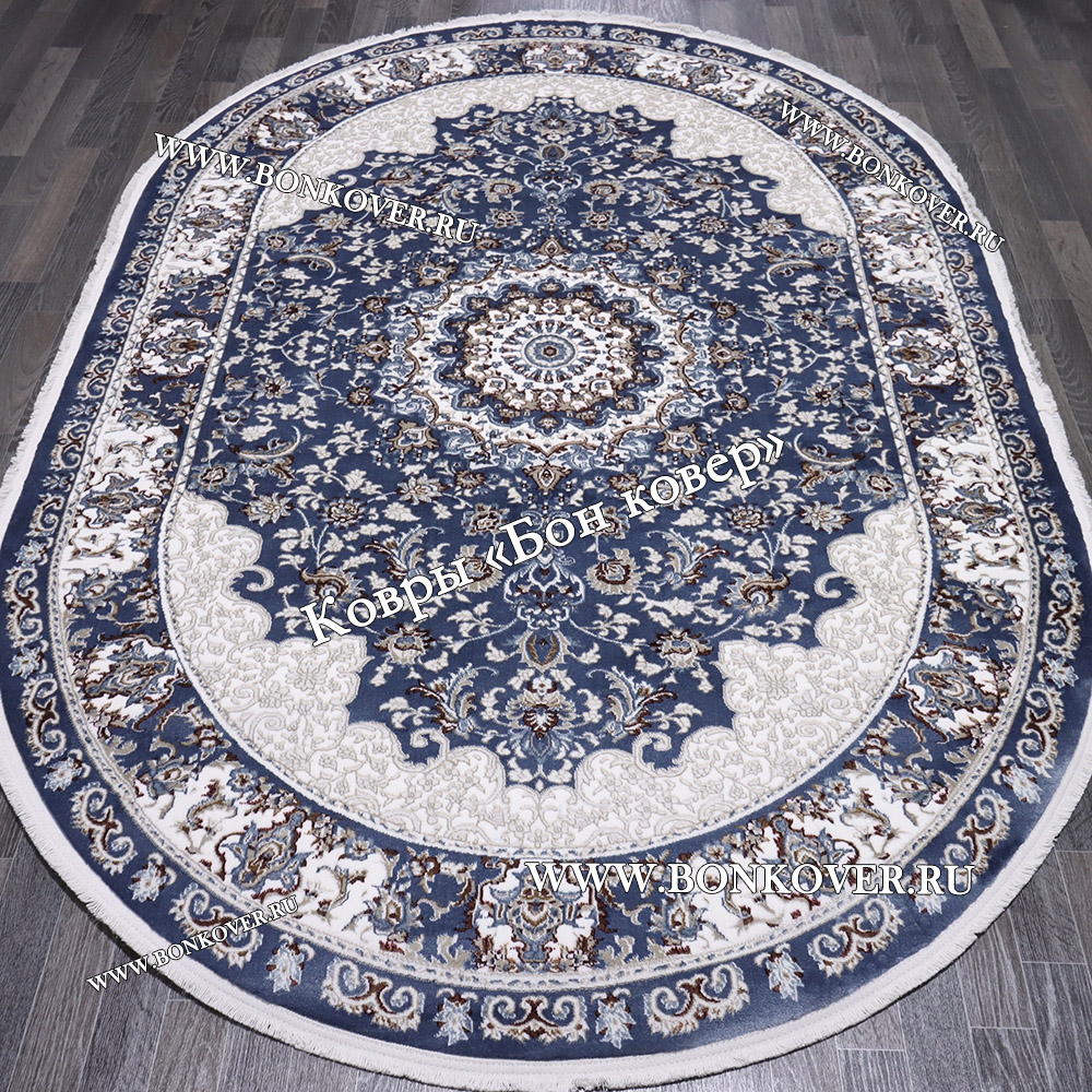 Элегантный Турецкий Ковер для гостиной дизайн 016 Синий Овал наполняет интерьер квартиры теплом и уютом, гармонично сочетает в себе изящество и стиль. Он соткан из износостойких материалов, комфортный и долговечный.