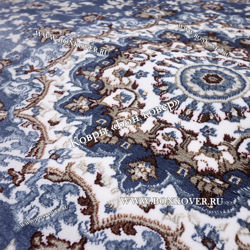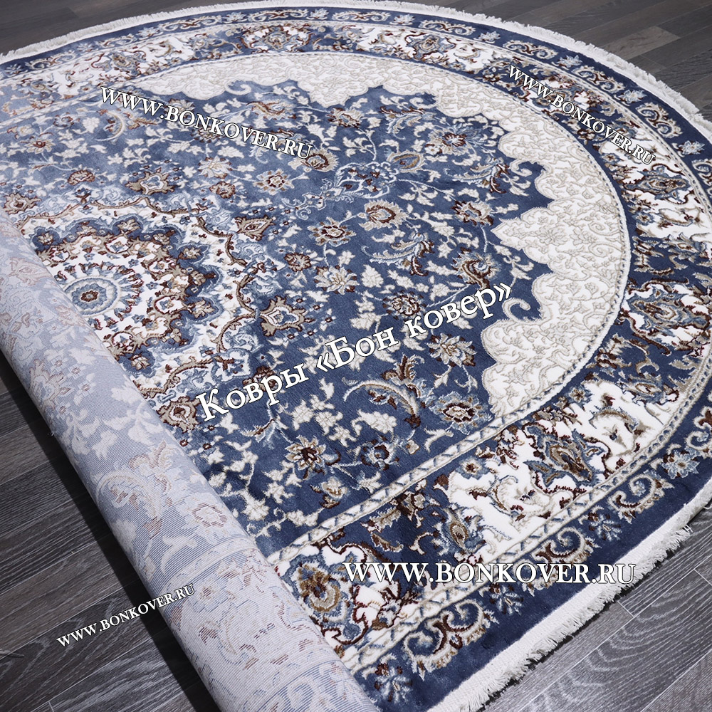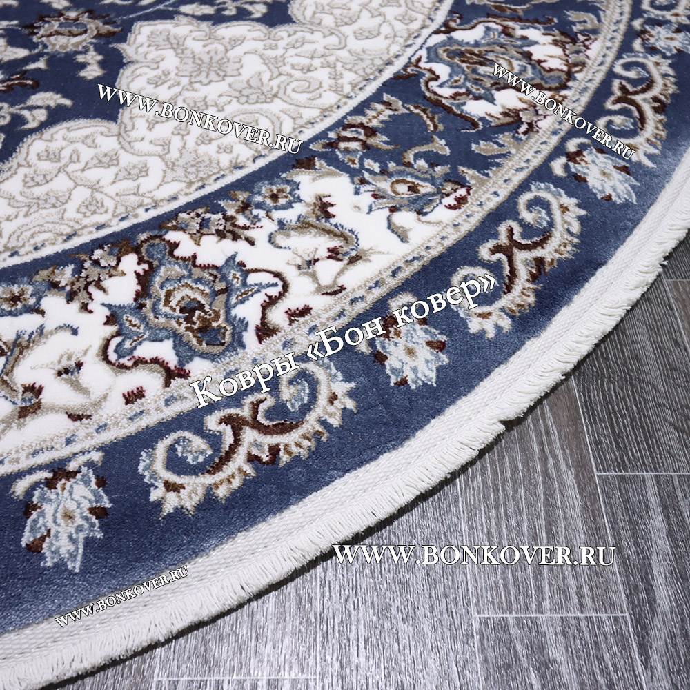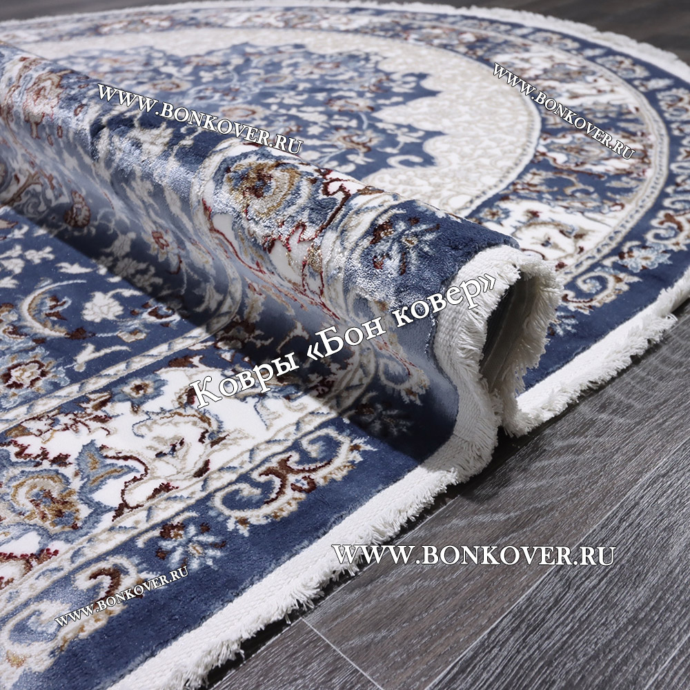 Элегантный Турецкий Ковер для гостиной дизайн 016 Синий Овал наполняет интерьер квартиры теплом и уютом, гармонично сочетает в себе изящество и стиль. Он соткан из износостойких материалов, комфортный и долговечный.