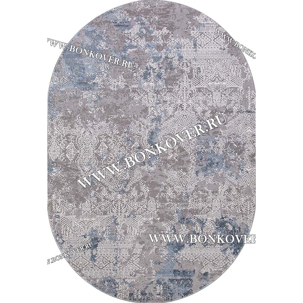 Турецкий Ковер Для Гостиной Дизайн 27 Синий с Серым Овальный