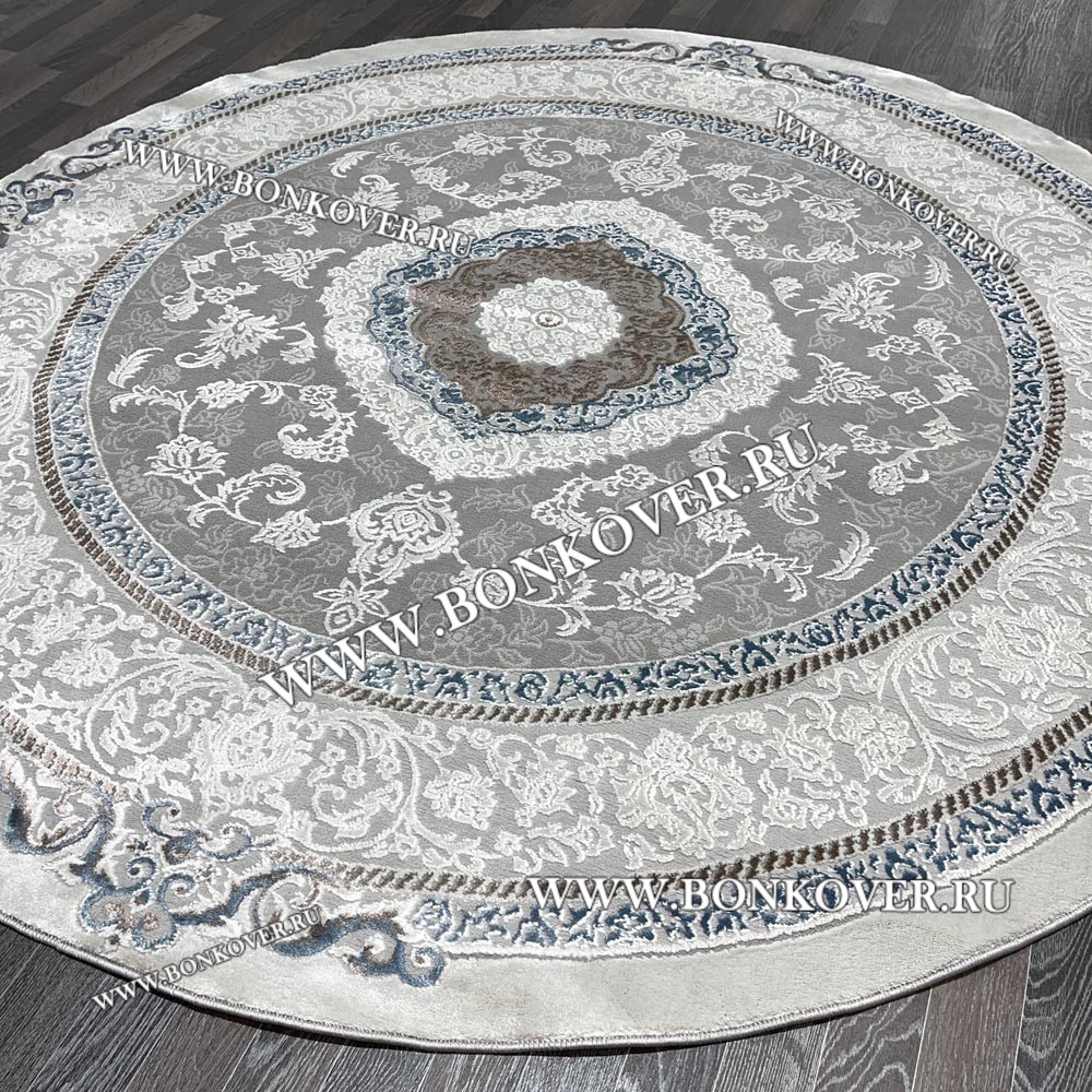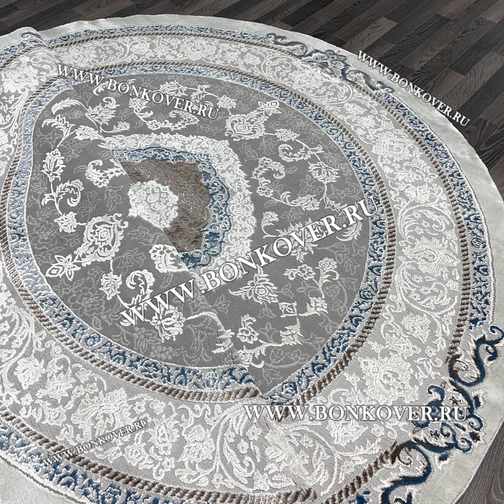 Элегантный Турецкий Ковер Для Гостиной Дизайн 27 Синий с Серым Круг наполняет интерьер помещения теплом и уютом, гармонично сочетает в себе изящество и красоту. Он изготовлен из высококачественных материалов, прочный и долговечный.