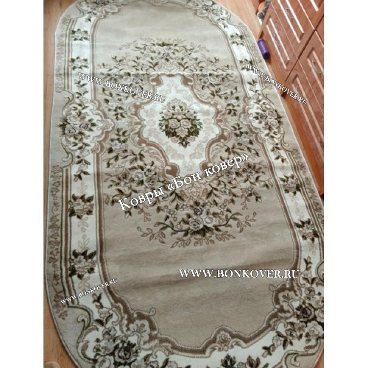 Классический ковер дизайн 104 Белый с бежевым Овал