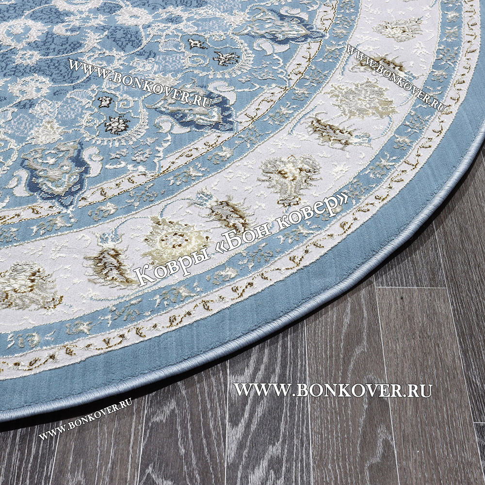 Импозантный Турецкий Ковер Для гостиной New дизайн 84 Голубой Круг наполняет интерьер помещения теплом и уютом, гармонично сочетает в себе изящество и красоту. Он изготовлен из износостойких материалов, комфортный и долговечный.