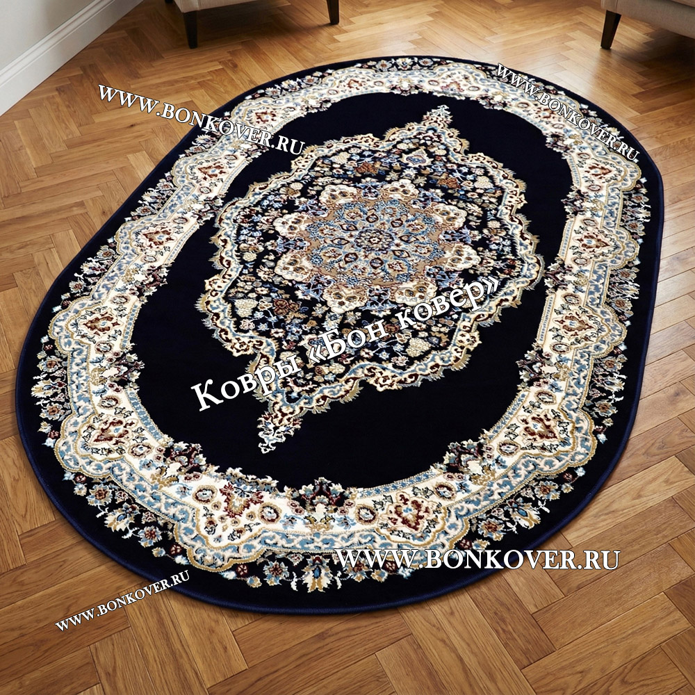 Турецкий Ковер Медальон дизайн 72 Синий Овальный станет великолепным преображением жилого помещения, подчеркивая высокий статус хозяина.