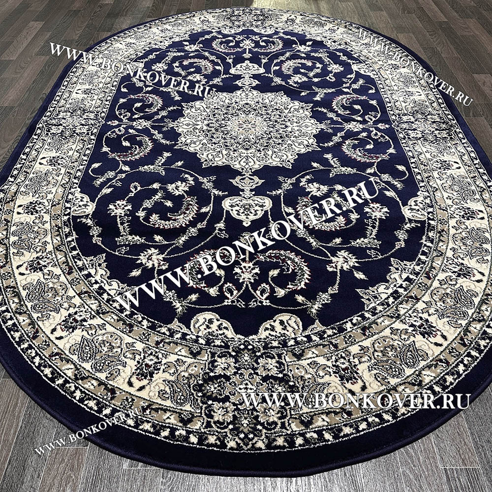 Изящный Турецкий Ковер Медальон дизайн 73 Синий Овальный наполняет интерьер жилого пространства теплом и уютом, гармонично сочетает в себе изящество и красоту. Он изготовлен из износостойких материалов, прочный и долговечный.