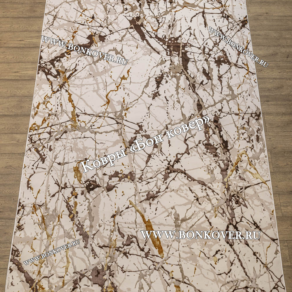 Турецкий Прямоугольный Ковер Бежевый с Золотистым дизайн 01