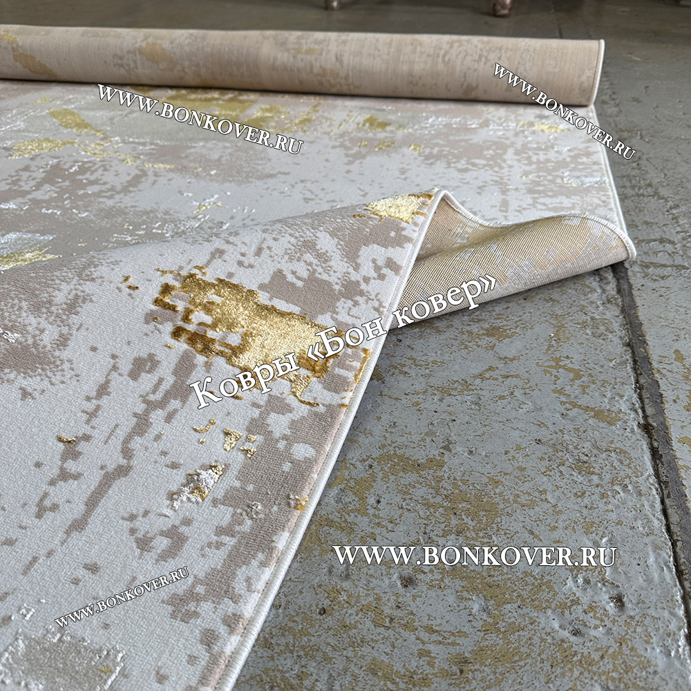 Элегантный Турецкий Прямоугольный Ковер Бежевый с Золотистым дизайн 01 наполняет интерьер помещения теплом и уютом, гармонично сочетает в себе изящество и стиль. Он создан из износостойких материалов, прочный и долговечный.