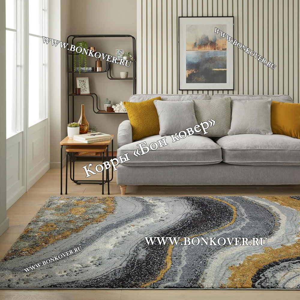 Красивый Турецкий современный ковер арт 28914 наполняет интерьер гостиной теплом и уютом, гармонично сочетает в себе изящество и красоту. Он изготовлен из экологически чистого сырья, комфортный и долговечный.