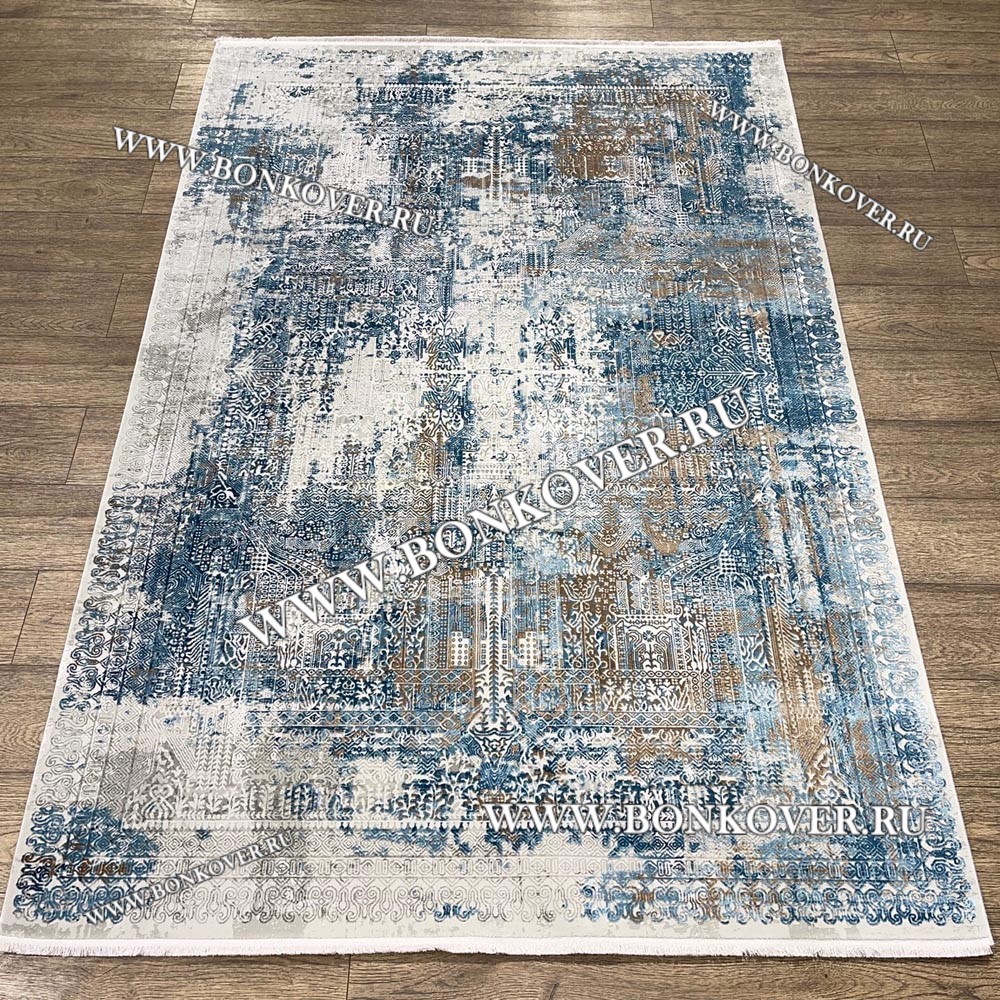 Высокоплотный Премиальный Ковер из вискозы Дизайн 02 Голубой с Бежевым станет стильным преображением жилого помещения, подчеркивая высокий статус семьи владельца.